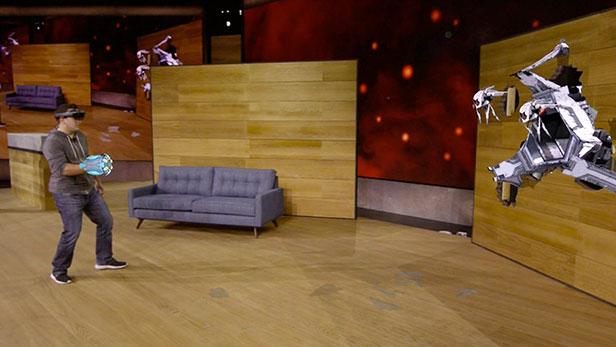 如果用HoloLens玩遊戲(xì)效果如何?微軟正在開發(fā),在2015年的E3發布會上,微軟演(yǎn)示了所謂的混合現實遊戲。